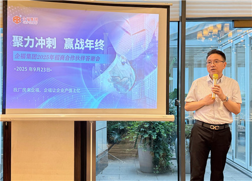 2025年9月23日下午,“聚力冲刺·赢战年终”企福集团2025年招商合作伙伴答谢会在华亭湖时代大酒店成功举办,20位招商合作伙伴齐聚一堂。企福集团总裁张建军、企福置业顾问公司总经理蒋丽丽、企翔园区运营公司总经理陆春花出席。